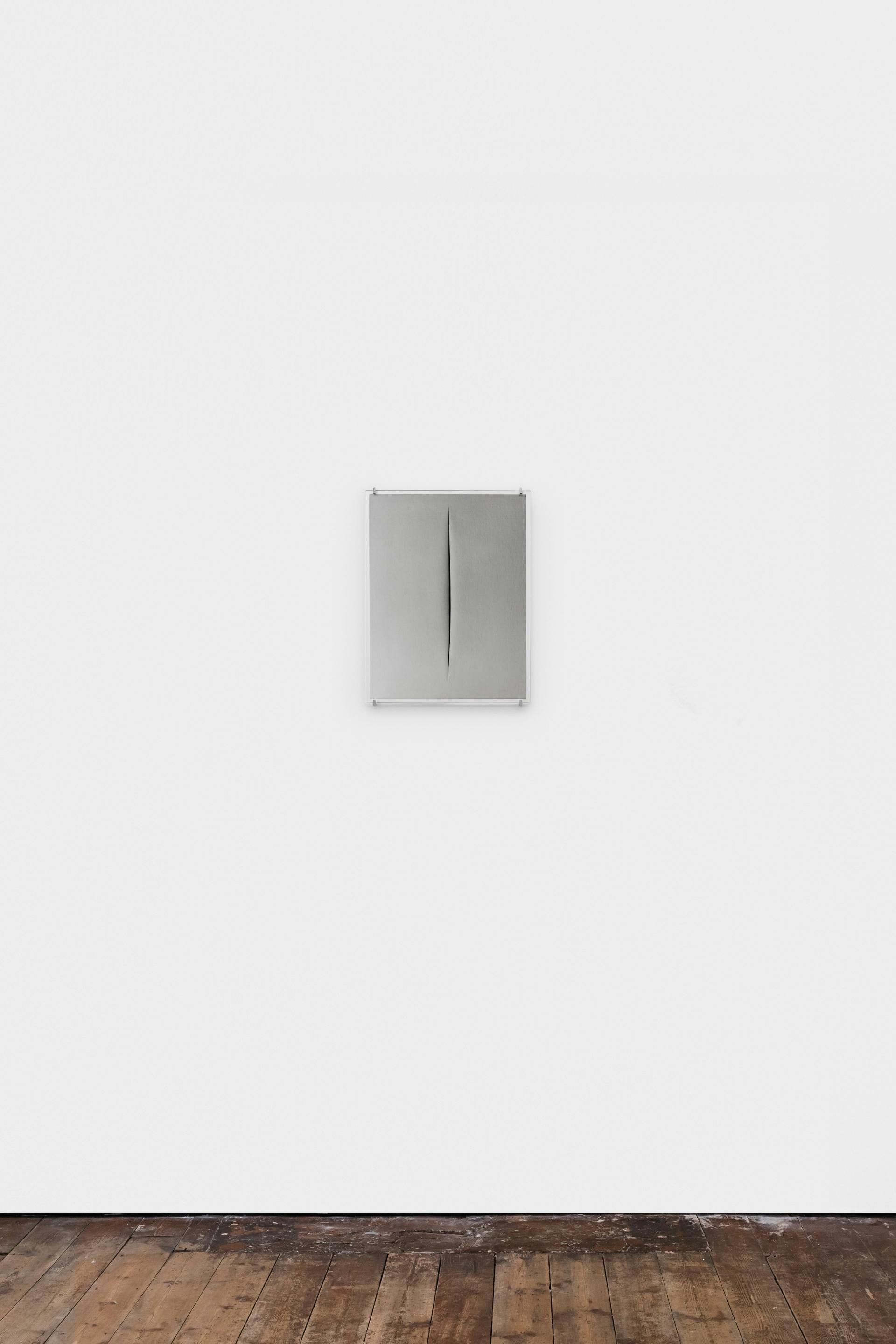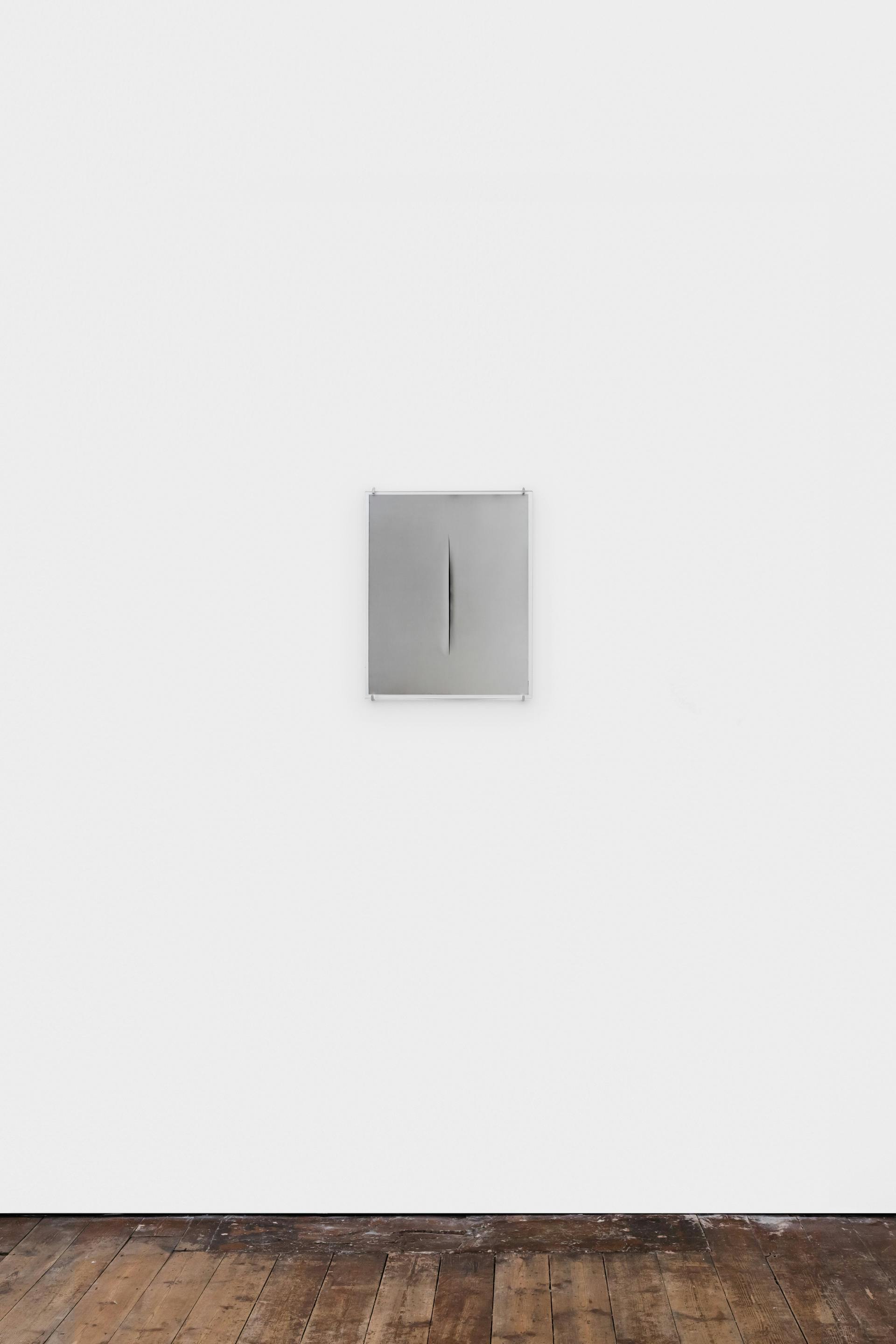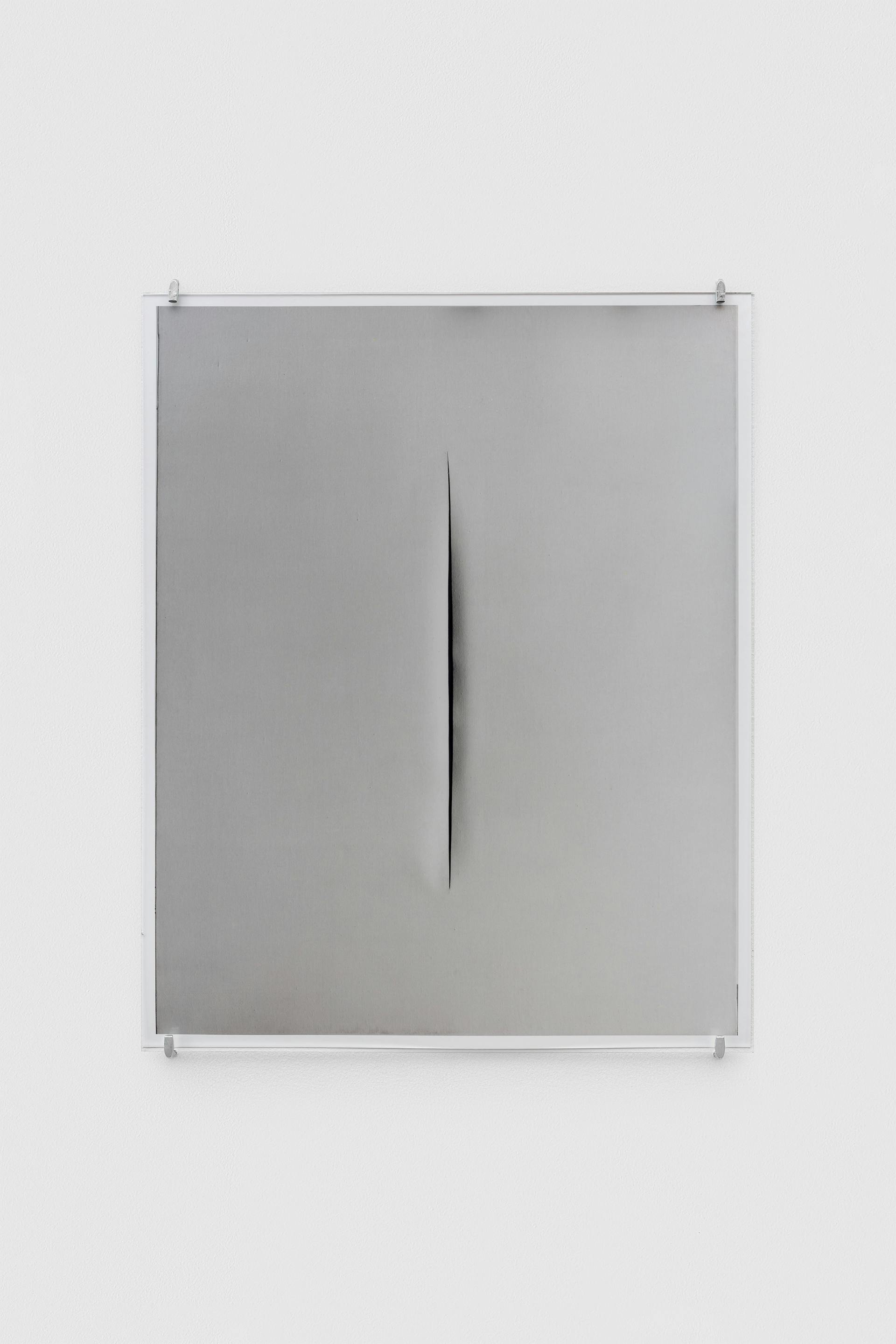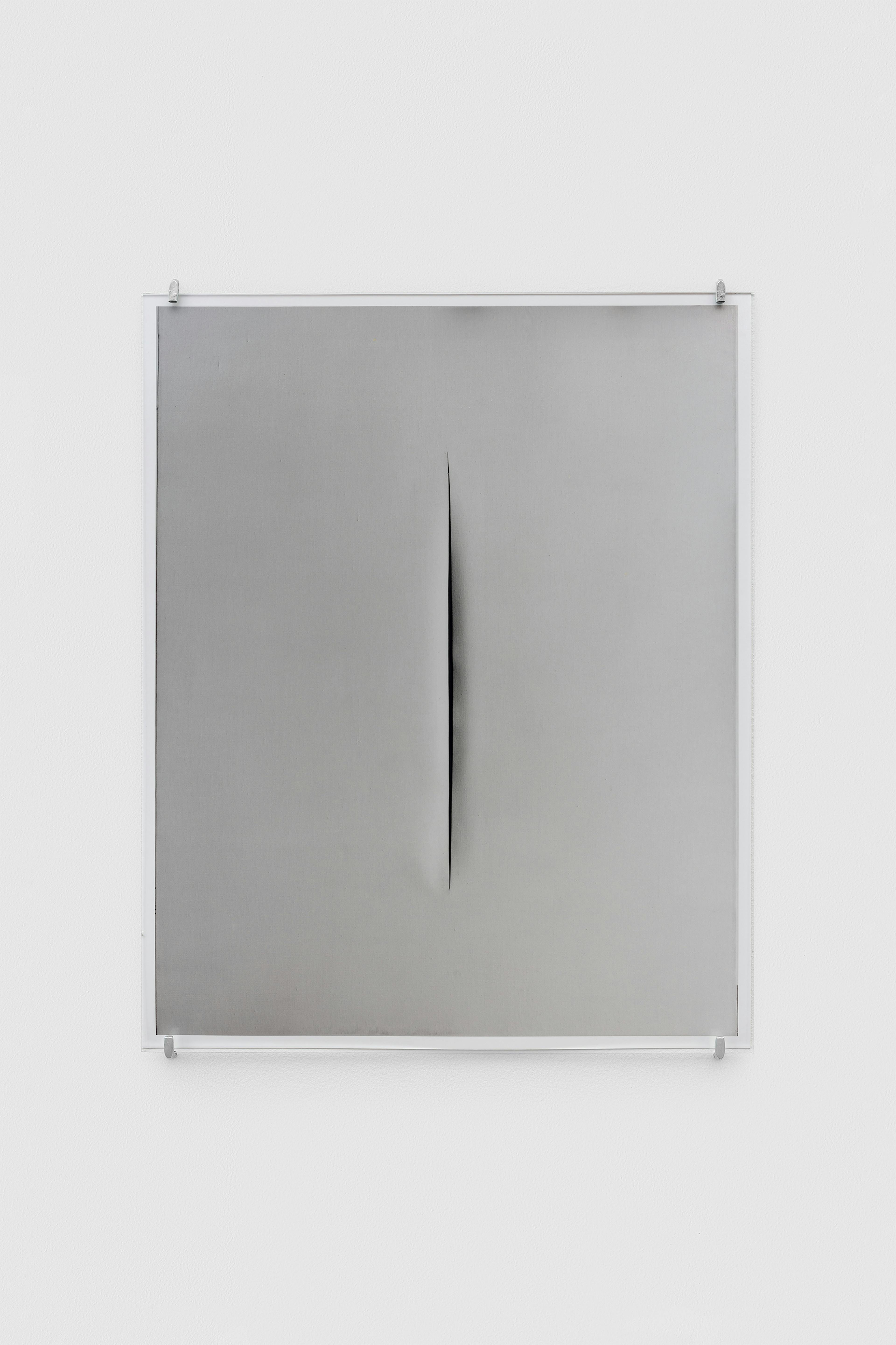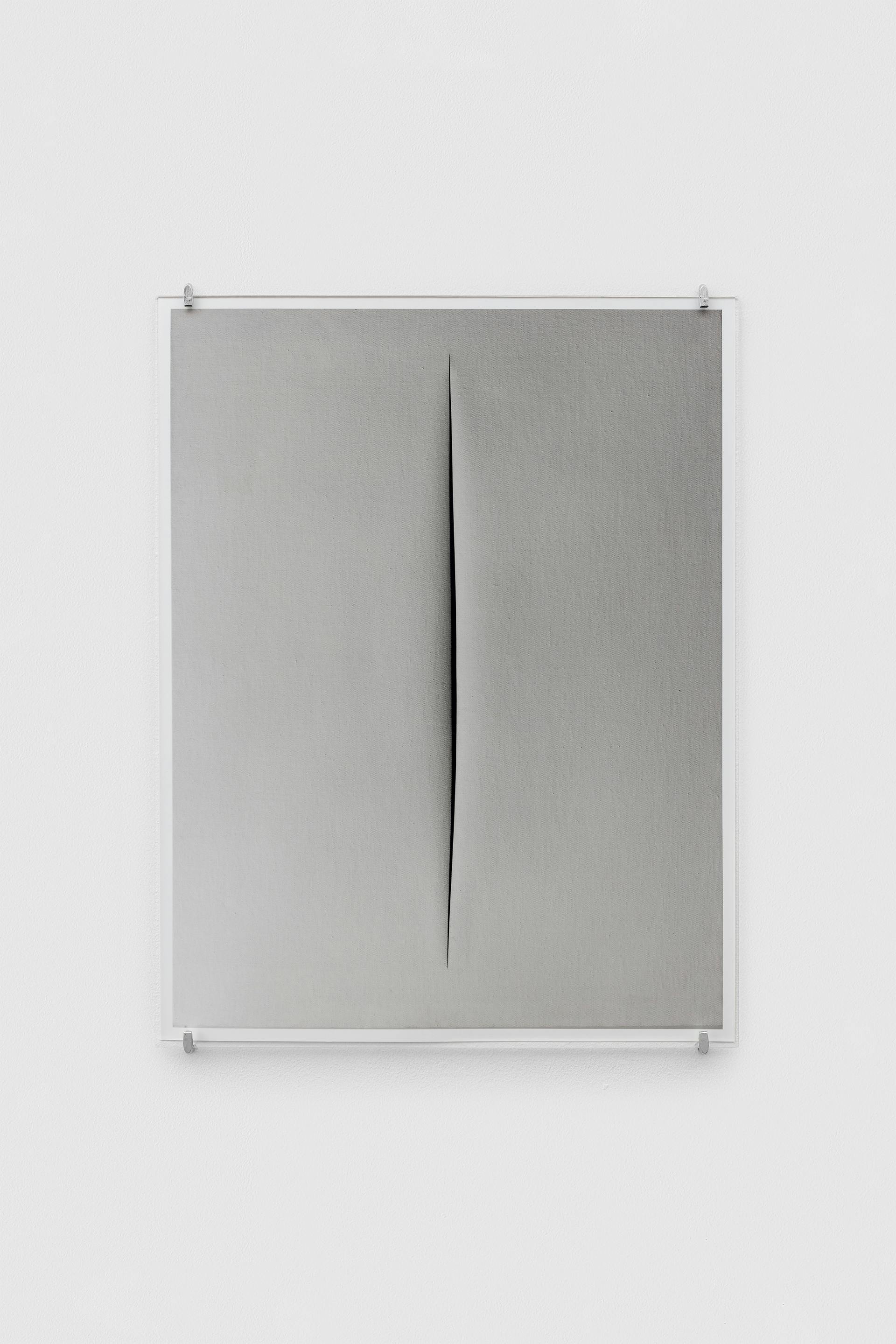For Taguchi, the infinite dimension Fontana gestures toward is approached through photography. The slashes operate as apertures, not as revelations but as sites of attention – moments where looking is slowed and deferred. In the darkness of each scar, the image does not disclose itself. It remains held, suspended, in anticipation.